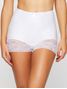 Short em microfibra com pernas e recortes em renda. Recorte na frente com forro em cetinete de compressão modela e disfarça o volume na região do abdômen.