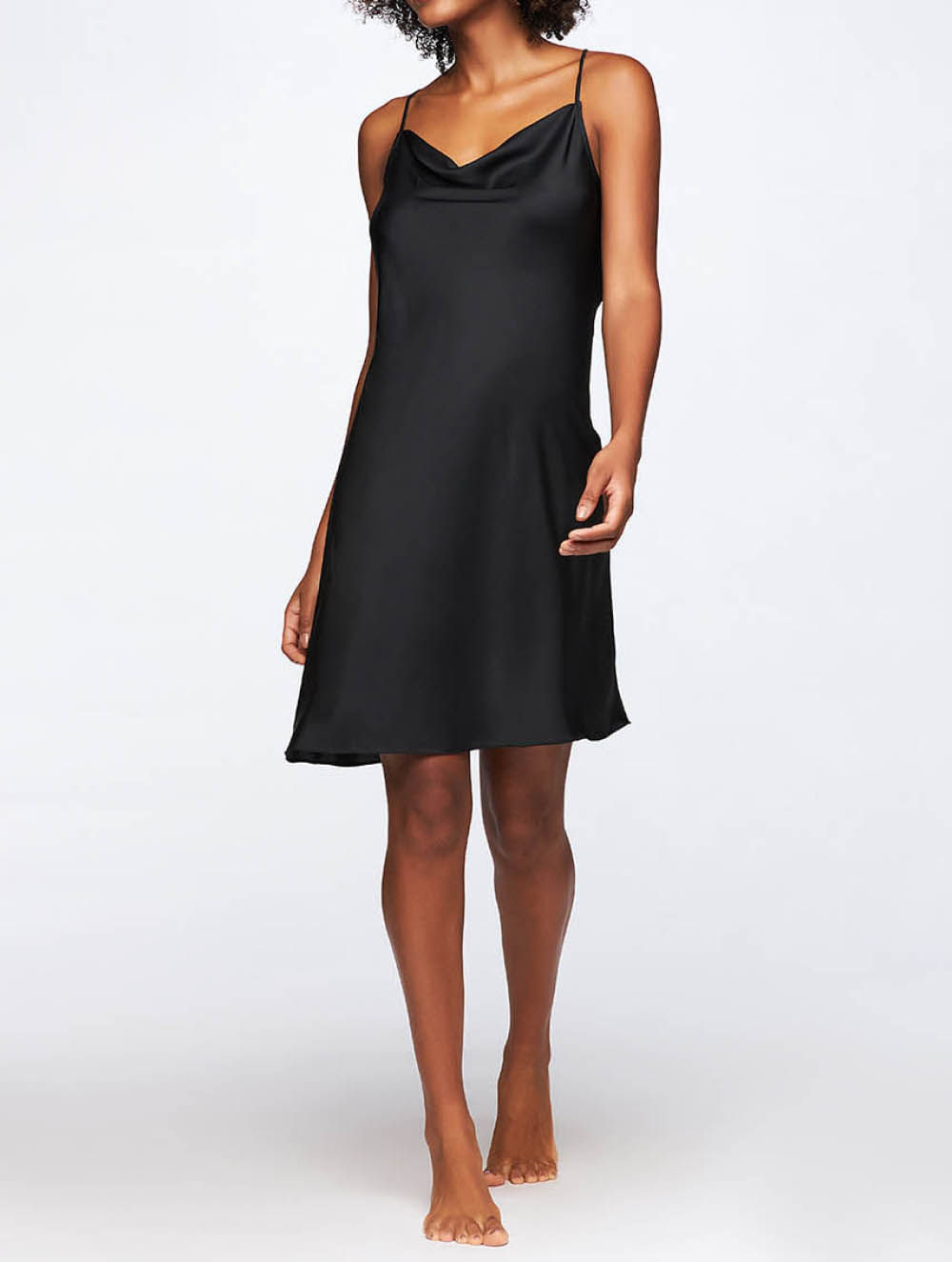Camisola curta em cetim com modelagem sofisticada no decote e detalhe das alças cruzadas nas costas com amarração.