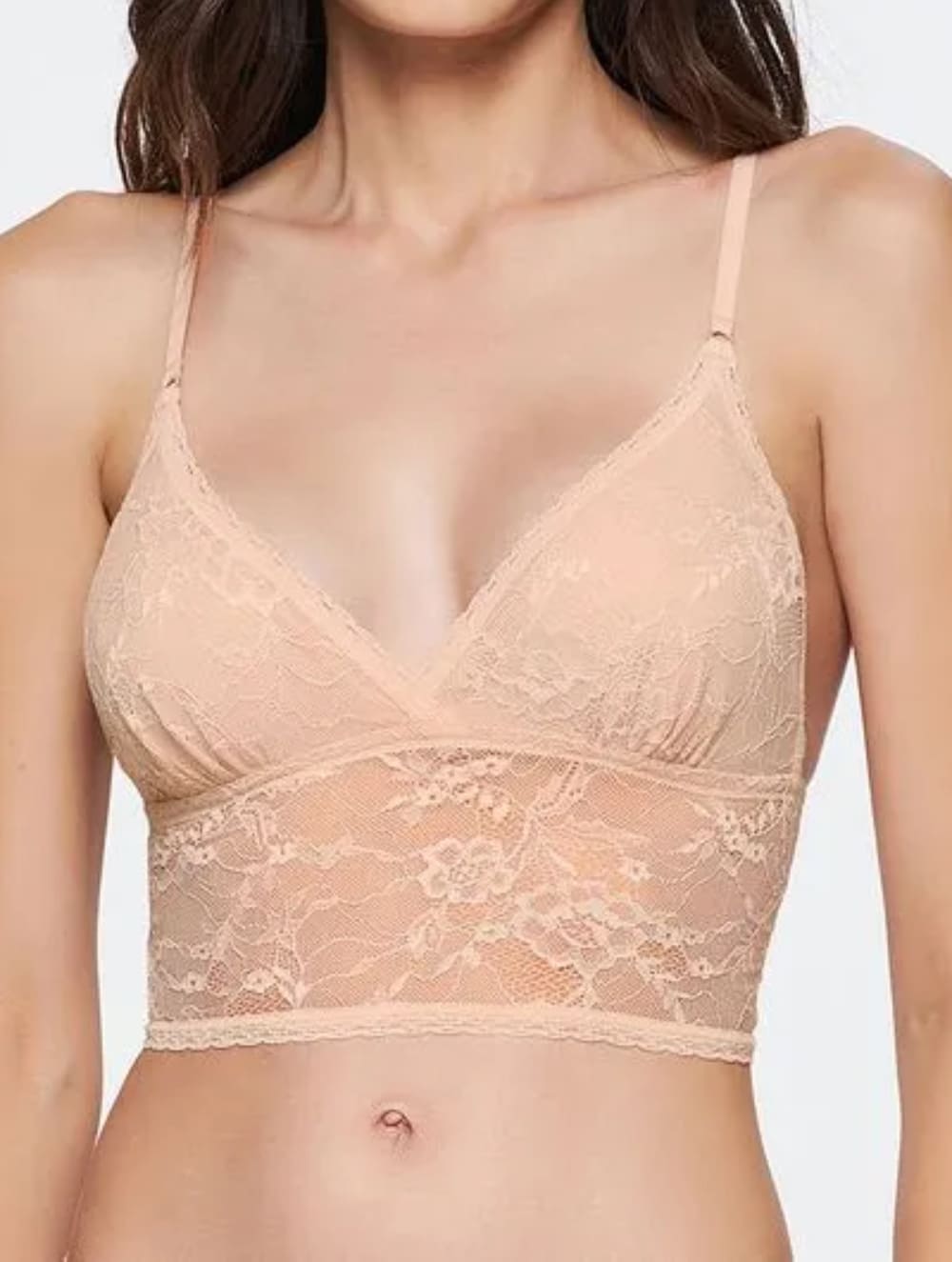 Corpete leve de base alongada, possui forro em microfibra e alças reguláveis, não possui fecho nas costas.