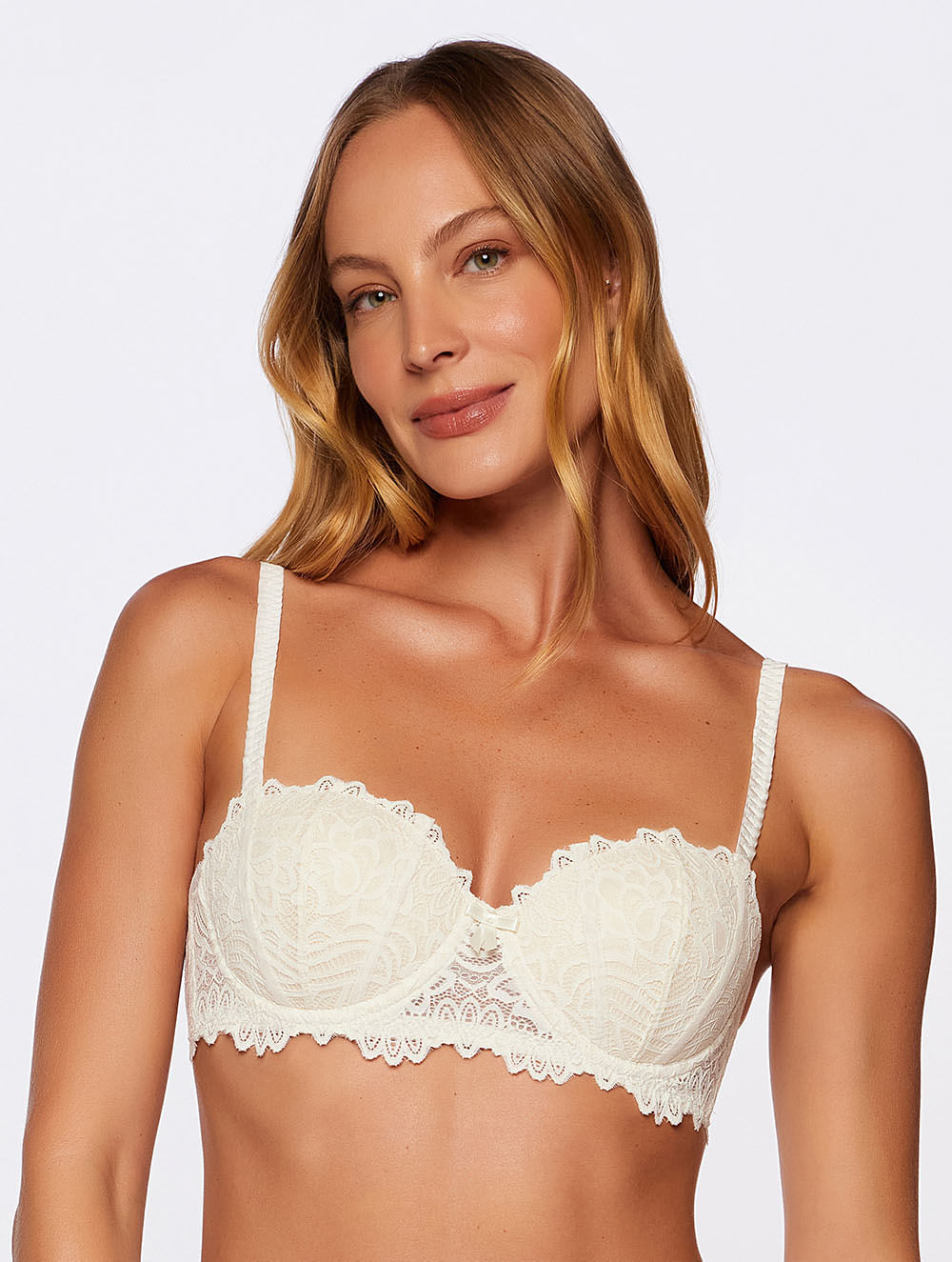 Sutiã com bojo mais macio e que se adapta melhor ao formato do seio. Possui aro, alças reguláveis, laterais largas com barbatanas e fecho nas costas.