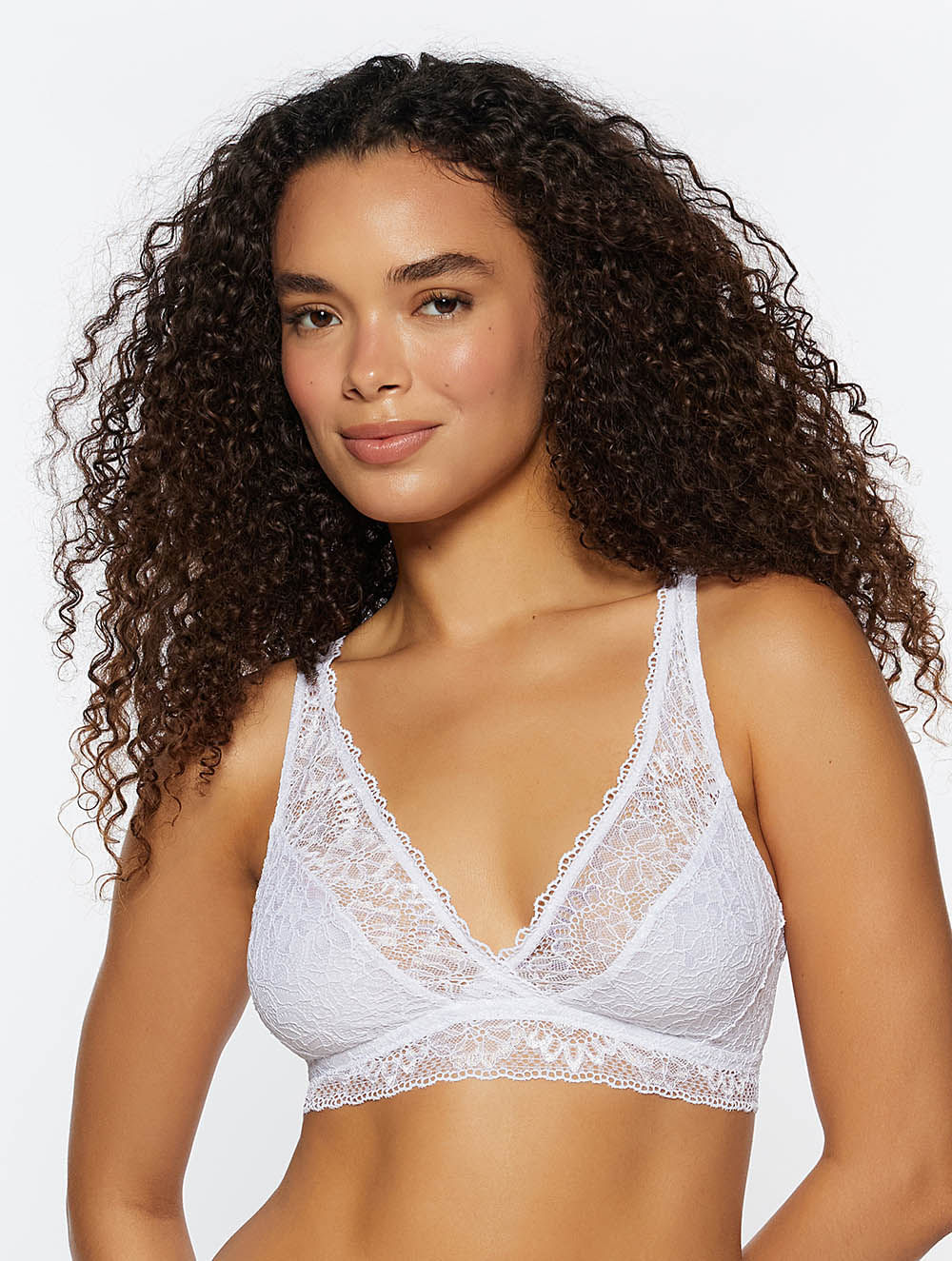 Top leve confeccionado em renda. O modelo possui forro em microfibra e alças com regulagem. Não possui fecho nas costas.